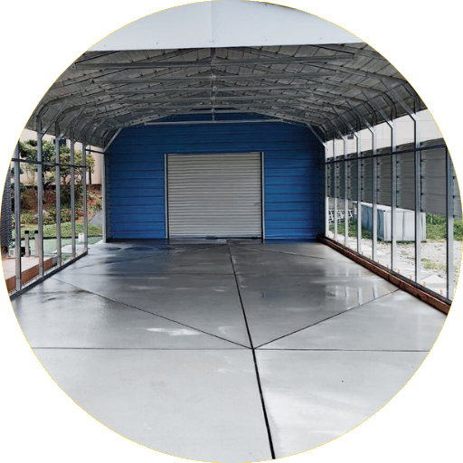 このアメリカンガレージは、現代的な住宅にマッチするシンプルで機能的なデザインが特徴です。広々とした内部空間は、車両やアウトドア用品の保管に最適で、側面に設けられた窓からは自然光がたっぷりと差し込み、明るく快適な作業空間を提供します。さらに、ガレージの裏側には道具や機器を安全に保管できる収納スペースを設置し、効率的にスペースを活用できる設計としました。
